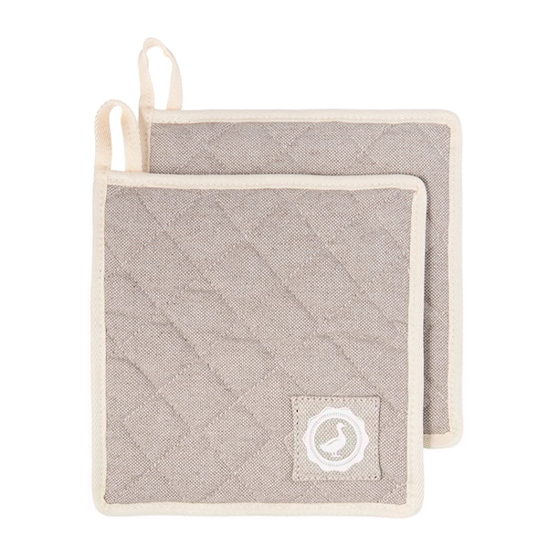 Anders Petters Signerat grytlapp 20x20 cm, 2-pack, är både praktiska och stilfulla grytlappar. Tillverkade av återvunnen bomull för ett mer hållbart val, skyddar de dina händer från heta grytor och ugnsformar. Grytlapparna har en hängögla för smidig förvaring när de inte används.