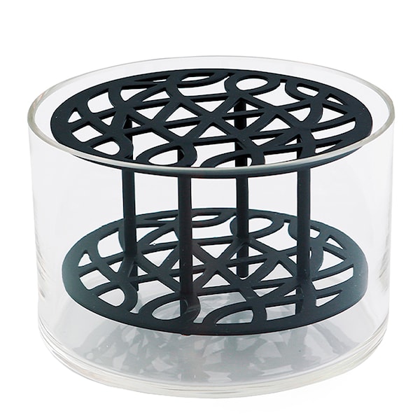 Klong Äng Vas har gett oss möjligheten att arrangera blommorna på ett nytt, vackert sätt. Vasen är tillverkad i mässing eller rostfritt stål med tillhörande glasinsats. Glasvasen är munblåst i Tjeckien. Den utskurna metallställningen fungerar som ett inbyggt blomsterstöd.