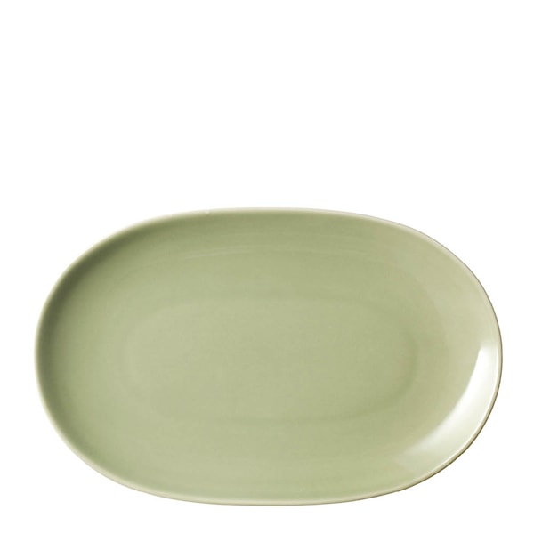 Arabia 24h oval tallrik 18x28 cm – salviagrön är ett mångsidigt porslin i en ny, harmonisk glasyr. Den eleganta ovala formen gör den idealisk för servering av mindre rätter eller som uppläggningsfat.