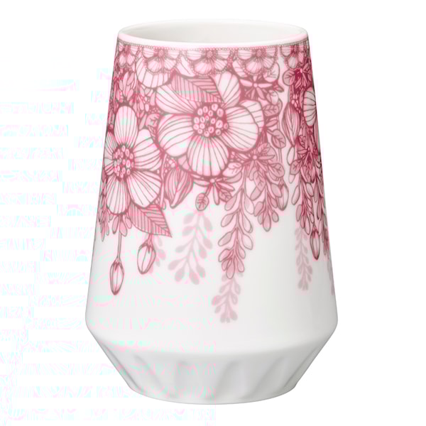 Heini Riitahuhta är en finsk formgivare och keramiker som tog fram denna fina serie Huvila, vilket betyder villa på finska. Riitahuhta har skapat många blommönster för Arabia med sin distinkta stil, Huvila kom ut 2017. Heini fick inspiration från sin barndoms somrar när hon besökte sin farmor och inspirerades av känslan av hennes lusthus. I trädgården där fanns en massa blommor, men framförallt en vildros som Heine hämtat inspiration från till detta vackra rosa blommönstret. Det handritade mönstret skickar tankarna tillbaka till 1920-talet och är inbjudande och romantiskt.