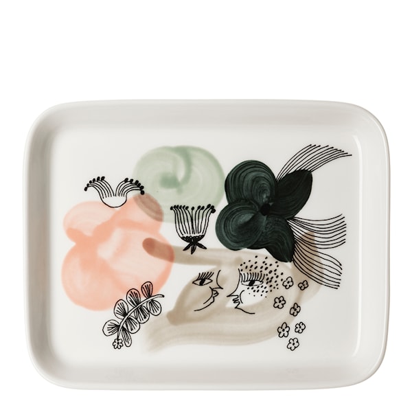 Kukkamaa assiett 15x19 cm från Arabia är en elegant och mångsidig rektangulär tallrik som passar perfekt för frukost, fika eller som ett mindre uppläggningsfat. Designad av Armi Teva, pryds tallriken av det förtrollande Kukkamaa-mönstret, där handritade linjer och penseldrag skapar en känsla av grönska och naturlig charm.