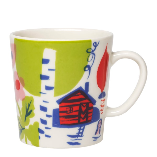 Arabia Luonto mugg 30 cl – Sommar är fylld med värme och nostalgi. Med ett motiv signerat Matti Pikkujämsä fångar den den nordiska sommarens stunder – från bad till blomsterängar. En vacker gåva som passar året runt.
