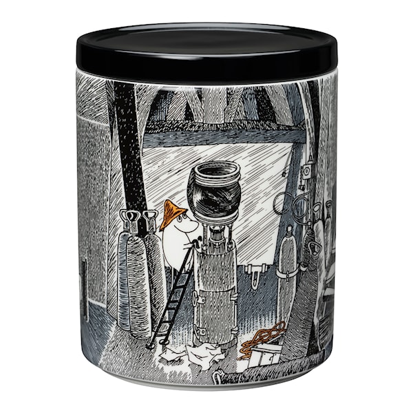 Fantastiskt fin burk från Arabia med muminmotivet, "Trogen sitt ursprung". Det visar en ny sida fylld av känslor, från Tove Janssons resa i sitt eget känsloliv. Serien tar sin inspiration från Toves sista muminbok, "Sent i november", som hon skrev strax efter att hon förlorat sin mamma. Muminpappan tar sin familj och flyttar till en fyr där de startar ett nytt liv. Det nya livet för Muminfamiljen är hårt och slitsamt och utmanar dem att reflektera över vilka de egentligen är. "Trogen sitt ursprung" är egentligen två historier som flätas samman, "Pappan och havet" och "Sent i november" och den melankoliska historien speglar den sorg och längtan Tove kände efter sin mor som gått bort.