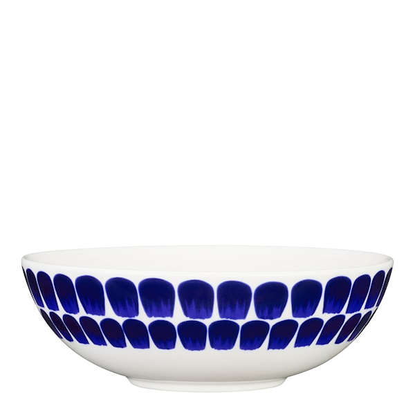 Det unika mönstret, som har en handmålad känsla med tydliga penseldrag och rytmiska detaljer, ger skålen en konstnärlig prägel som förhöjer varje dukning. Designad av Heikki Orvola, med mönster av Helorinne & Kallio, är skålen också praktisk i användning då den tål diskmaskin och är lätt att rengöra efter användning.