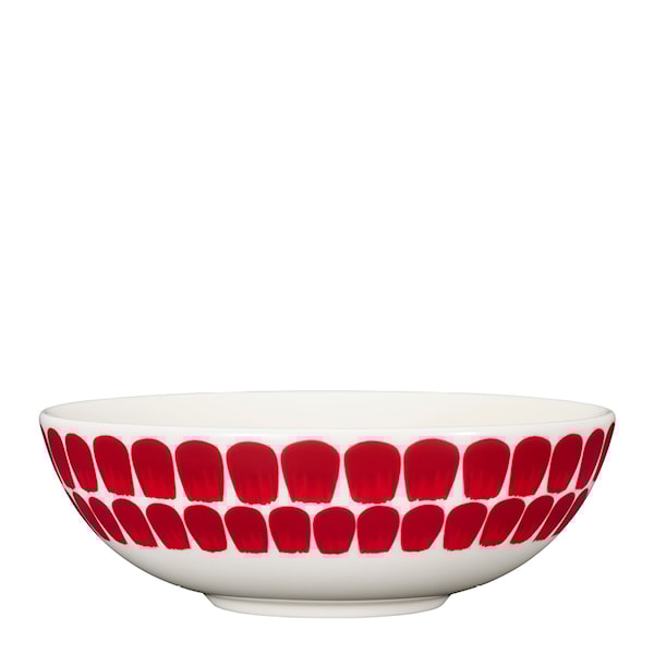 Det unika mönstret, som har en handmålad känsla med tydliga penseldrag och rytmiska detaljer, ger skålen en konstnärlig prägel som förhöjer varje dukning. Designad av Heikki Orvola, med mönster av Helorinne & Kallio, är skålen också praktisk i användning då den tål diskmaskin och är lätt att rengöra efter användning.