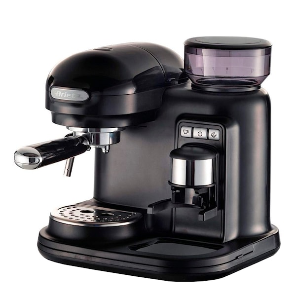 Vacker och modernt designad espressomaskin som ingår i Arietes serie Moderna, maskinen har en integrerad kaffekvarn så du får perfekt mängd kaffe varje gång till din espressodryck.