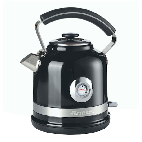 Harmoniska former och fina detaljer definierar den rymliga vattenkokaren från Arietes serie Moderna - en vattenkokare som är funktionell och estetiskt tilltalande. Ariates serie Moderna kännetecknas inte bara av dess design och elegans utan också av funktionaliteten hos produkterna. Vattenkokaren kan roteras 360° på sin station och den är enkel att ta av när vattnet har kokat klart och ställa den på bordet eller placera den var du vill på köksbänken. Ytterhöljet är tillverkat i rostfritt stål, har en synlig termometer som anger vattentemperaturen och ett avtagbart och tvättbart filter. Tack vare den automatiska avstängningsfunktionen så kan du tillåta dig själv att gå ifrån vattenkokaren utan någon risk för några olyckor.