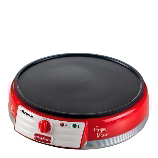 Arietes serie Party Time kommer förvandla ditt kök till en amerikansk diner från 1950-talet, med sina omisskännliga linjer och många produkter som är utformade för att samla familj och vänner i glädje. Med den nya Crepepannan från Arietes serie Party Time kommer liva upp stämningen hemma med hemlagade crepes till matbordet, mycket enkel att använda och som du inte kommer att klara dig utan.