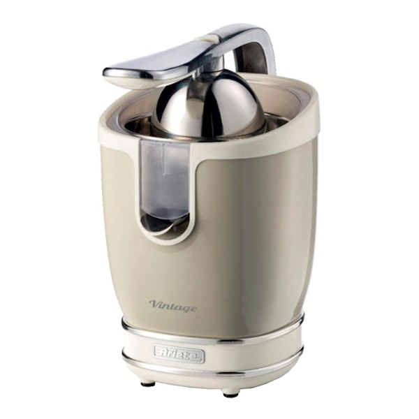 Ariete Vintage 413 Citruspress är en motordriven press med kraftfull men tyst motor. Liten, nätt och och effektiv med ljuvlig vintage-design och pastellfärger. Pressa enkelt apelsinerna till frukostjuicen eller citronerna till din bästa lemon curd. Vintage-serien från Ariete kombinerar italiensk design med funktionalitet och användarvänlighet.