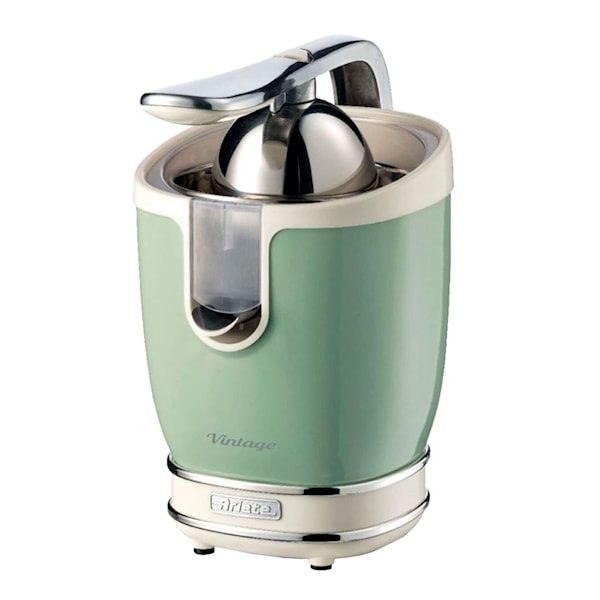Ariete Vintage 413 Citruspress är en motordriven press med kraftfull men tyst motor. Liten, nätt och och effektiv med ljuvlig vintage-design och pastellfärger. Pressa enkelt apelsinerna till frukostjuicen eller citronerna till din bästa lemon curd. Vintage-serien från Ariete kombinerar italiensk design med funktionalitet och användarvänlighet.
