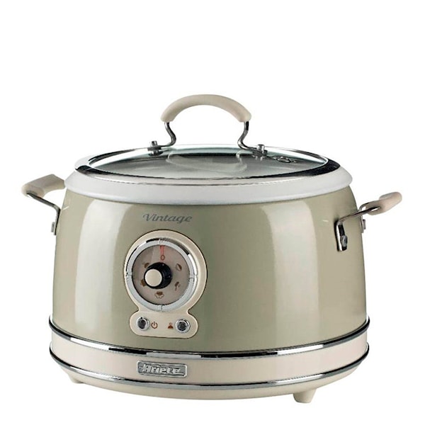 Ariete Vintage Multikokare är den kompletta multifunktionella kökshjälpen. Den har 5 förinställda funktioner; ris, steka, ånga, värma och långkok. Allt för att underlätta för dig att bi en stjärna i köket. Skålen i keramisk non-stick beläggning är avtagbar och lätt att rengöra.