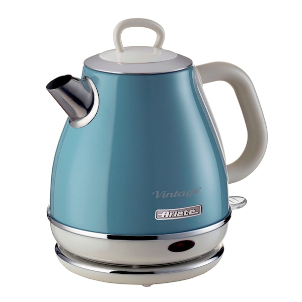 Ariete Vintage Vattenkokare rymmer 1 liter och kokar snabbt upp ditt vatten. Med en effektiv motor på 1630 watt behöver du inte vänta länge på ditt kokande vatten till dryck eller matlagning. Med den ljuvliga vintage-designen och olika pastellfärger att välja mellan blir den dessutom en dekorativ detalj i köket. Vintage-serien från Ariete kombinerar italiensk design med funktionalitet och användarvänlighet.