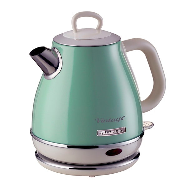 Ariete Vintage Vattenkokare rymmer 1 liter och kokar snabbt upp ditt vatten. Med en effektiv motor på 1630 watt behöver du inte vänta länge på ditt kokande vatten till dryck eller matlagning. Med den ljuvliga vintage-designen och olika pastellfärger att välja mellan blir den dessutom en dekorativ detalj i köket. Vintage-serien från Ariete kombinerar italiensk design med funktionalitet och användarvänlighet.