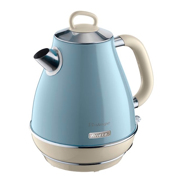 Ariete Vintage Vattenkokare rymmer 1,7 liter och kokar snabbt upp ditt vatten. Med en effektiv motor på 2000 watt behöver du inte vänta länge på ditt kokande vatten till dryck eller matlagning. Med den ljuvliga vintage-designen och olika pastellfärger att välja mellan blir den dessutom en dekorativ detalj i köket. Vintage-serien från Ariete kombinerar italiensk design med funktionalitet och användarvänlighet.