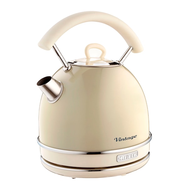 Ariete Vintage Vattenkokare rymmer 1,7 liter och kokar snabbt upp ditt vatten. Med en effektiv motor på 2000 watt behöver du inte vänta länge på ditt kokande vatten till dryck eller matlagning. Med den ljuvliga vintage-designen och olika pastellfärger att välja mellan blir den dessutom en dekorativ detalj i köket. Vintage-serien från Ariete kombinerar italiensk design med funktionalitet och användarvänlighet.
