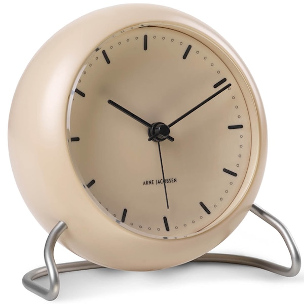 AJ City Hall bordsur är formgiven av den världsberömde danska arkitekten och formgivaren Arne Jacobsen. Klockan har alarm, snoozefunktion, och ljussensorer, och passar perfekt som väckarklocka. Klockan är tillverkad i härdat glas och plast med ett underrede i metall som ger bordsuret ett stilrent utseende. Batterier medföljer ej.