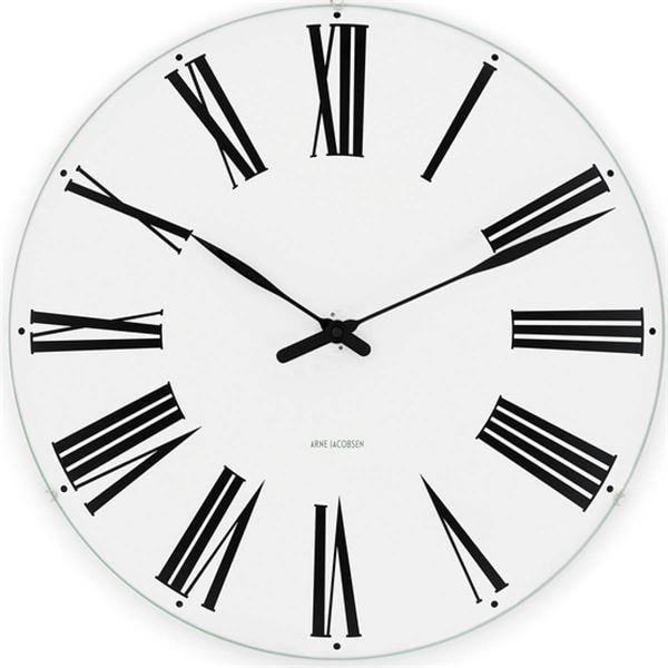 År 1942 skapade Arne Jacobsen vägguret Roman för Århus Rådhus och etablerade en tidlös designikon för hemmet. Uret erbjuds i fyra storlekar, tillverkade enligt originalritningarna. Denna version på 29 cm är det näst största alternativet. Den konkava glasfronten ger uret ett elegant, svävande uttryck på väggen. Perfekt som gåva vid bröllop, jubileer, födelsedagar, studentfirande och andra särskilda händelser.