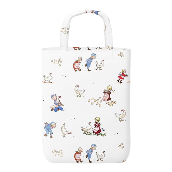 Arvidssons Emil & Ida i hönsgården tygkasse i offwhite är en funktionell textilprodukt med motiv från Astrid Lindgrens klassiska berättelser. Illustrationen av Emil och Ida i hönsgården, skapad av Björn Berg, ger kassen ett tydligt och igenkännbart uttryck.