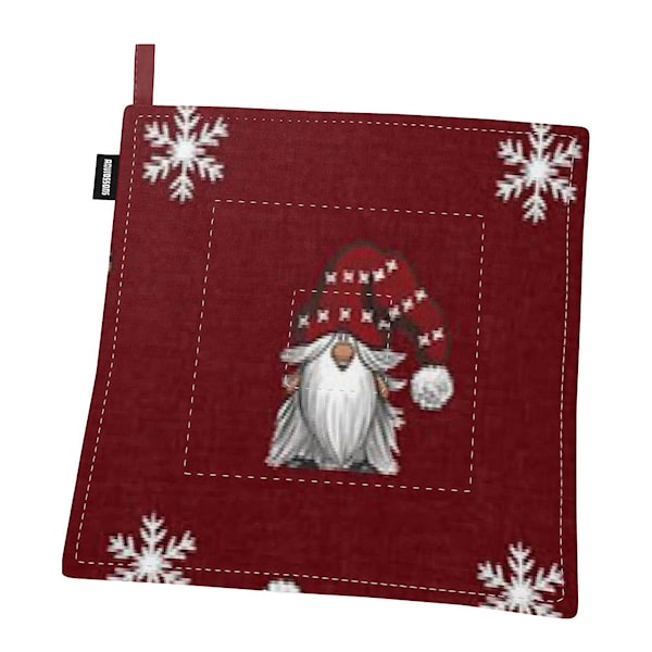 Julian & co grytlapp röd från Arvidssons Textil är en färgstark och julig kökstextil med design av MiaLotta Arvidsson-Mars. Det detaljrika och humoristiska mönstret på mörkröd botten skapar en varm och traditionell julkänsla – perfekt för att höja stämningen i köket under december.