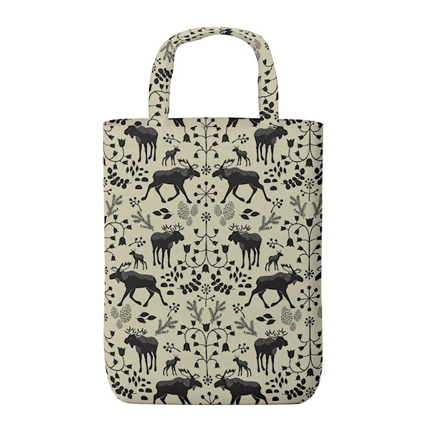Skogens konung tygpåse från Arvidssons Textil är både praktisk och dekorativ. Det grafiska mönstret i svart mot beige är inspirerat av skandinavisk skog och natur, formgivet av Linda Svensson Edevint.