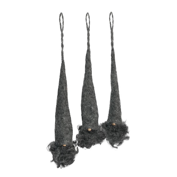 Grankvist tomte hängande i 3-pack från Åsas Tomtebod är handgjorda tomtar som tillför rustik charm i juletid. Med tovad luva och äkta fårskinn som hår är varje figur unik och skapad av naturliga material.