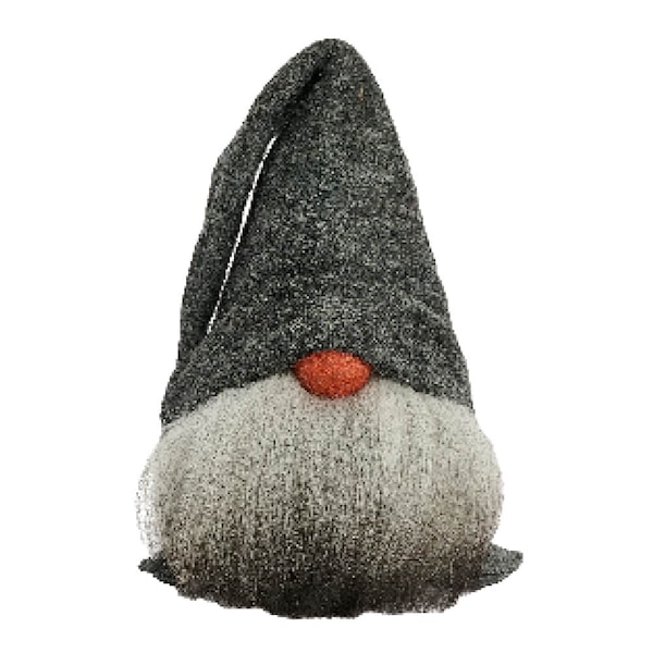 Kroppen är sydd i slitstark vadmal och den grå, tunga tovade luvan förstärker det klassiska intrycket. Skägget i mjukt islandsskinn ger tomten ett elegant och levande uttryck.