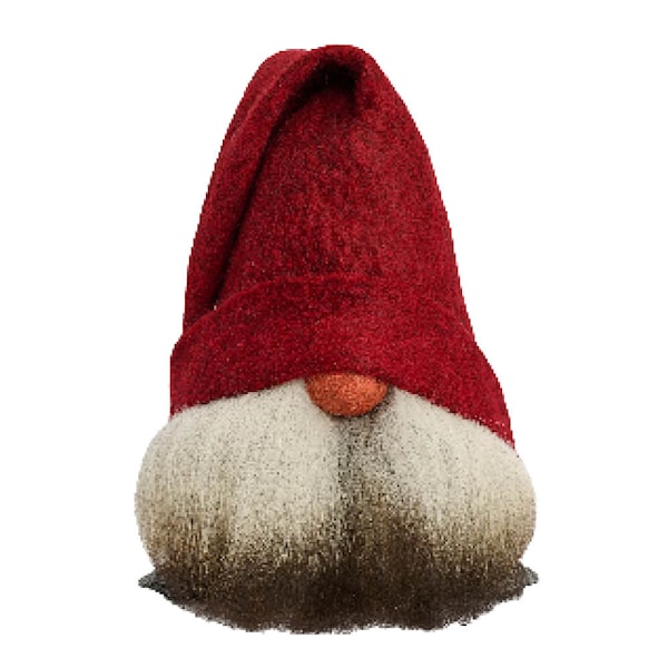 Med sin vadmalsklädda kropp och den röda, tunga tovade luvan har han ett charmigt och traditionellt utseende. Skägget i mjukt islandsskinn ger tomten en exklusiv och levande karaktär som gör honom till ett självklart inslag i julens dekorationer.