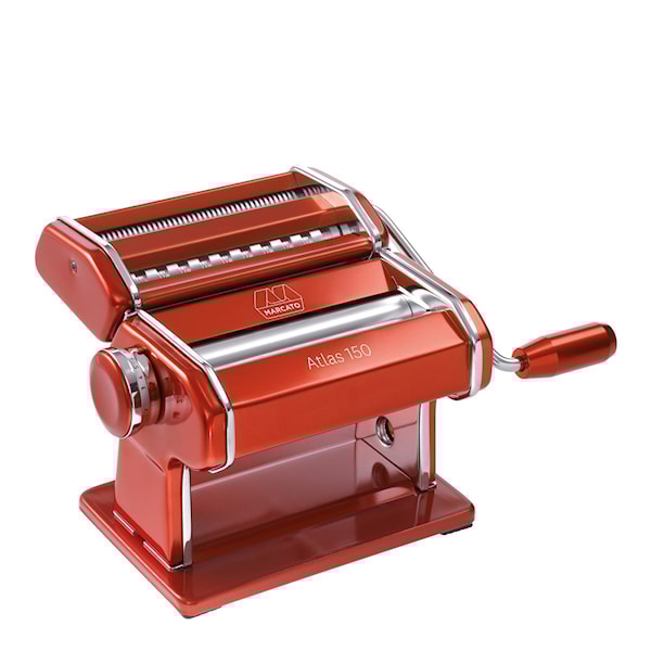 Atlas 150 Pastamaskin är en klassisk pastamaskin från Italienska Marcato. För dig som älskar hemmagjord pasta och har du inte testa ännu måste du prova, det är både enkelt, roligt och framför allt gott! Atlas 150 har ställbar tjocklek på lasagneplattorna, från 0.6 till 4.8 mm, till maskinen hör även valsar för fettuccine (6 mm) och tagliolini (1.5 mm). Maxbredd på lasagneplattor är 15 cm och bordsfäste ingår. Du kan även köpa till extra tillbehör för att göra egen lasagne, fettuccine, tagliolini och 12 andra pastaformer.