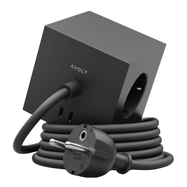 Avolt Square 1 USB-C med 1,8 meter kabel är ett ikoniskt och minimalistiskt grenuttag med förlängningskabel utvecklat för hem, kontor och offentliga miljöer. Den kubiska formen kombinerar funktion och design och skapar en stilren lösning för både ström och laddning.