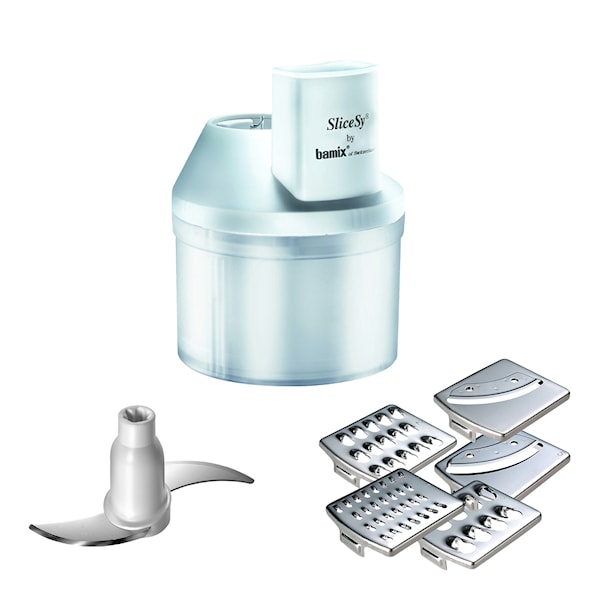 Bamix tillbehör SliceSy förvandlar din Bamix stavmixer till en flexibel allt-i-ett-beredare med hög precision. Bamix SliceSy är utvecklad för effektiv hackning, rivning, skivning och till och med lättare knådning – allt i en kompakt lösning som passar perfekt för daglig matlagning och bakning.