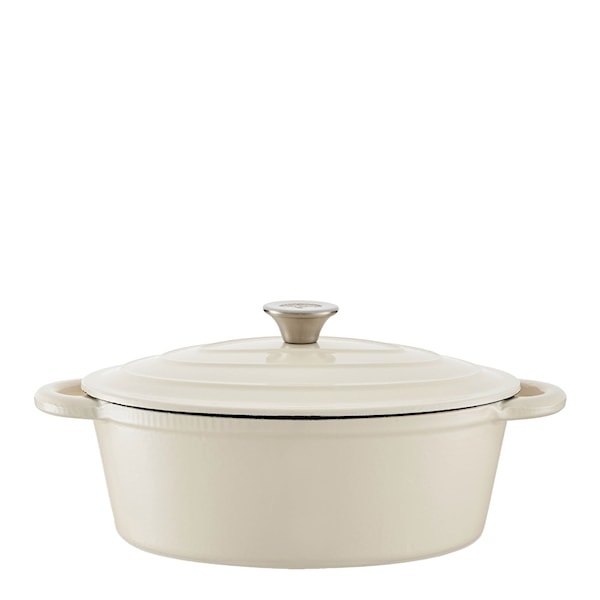 Gjutjärnsgrytan oval 29 cm 3 L från Barbary & Oak är av exceptionell kvalitet och tillverkad för att hålla värmen optimalt. Perfekt för dem som njuter av att laga smakrika grytor för hela familjen.