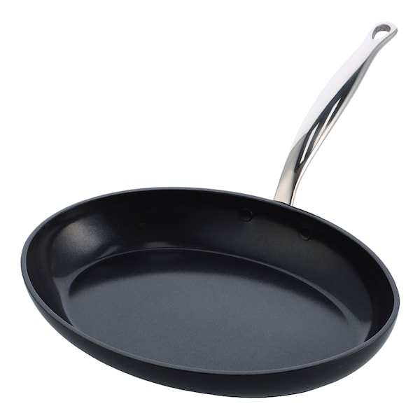 Stor stekpanna i aluminium som är speciellt utformad för fisk med en diameter på 33 cm och non-stick-beläggning från belgiska GreenPans Barcelona Pro-serie.