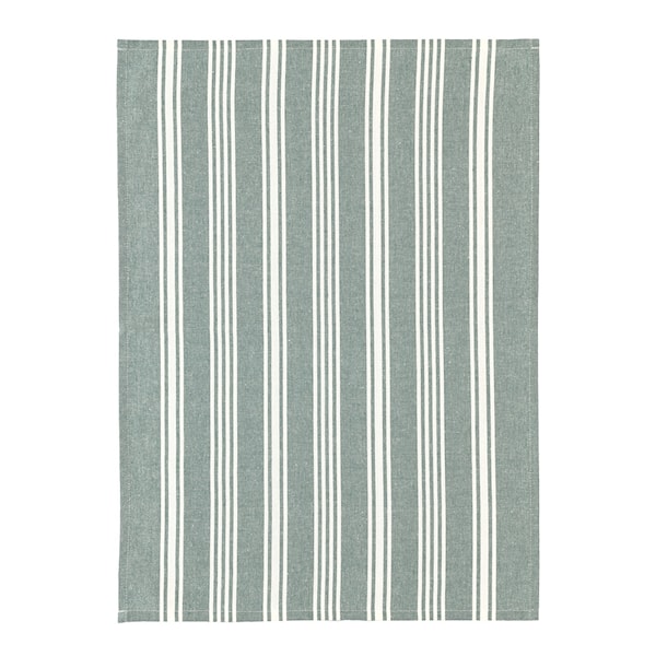 Eco Stripe kökshandduk 70x50 cm från Pillivuyt är tillverkad helt och hållet av återvunna textilfibrer. Materialblandningen består av bomull, polyester, viskos och nylon, vilket ger en slitstark och funktionell handduk för daglig användning i köket.