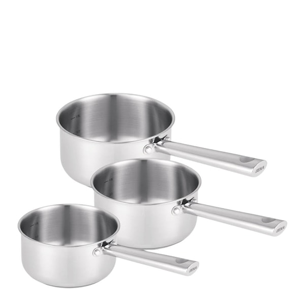 Beka Cicla kastrullset 3 delar är framtaget för vardagsmatlagning med fokus på funktion och kontroll. Setet innehåller tre kastruller i storlekarna 1,5 L, 2,0 L och 2,8 L, vilket ger flexibilitet för olika typer av rätter.