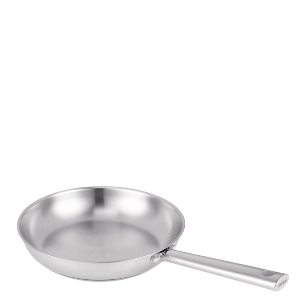 Med 3-lagersbotten värms pannan upp snabbt och jämnt. Det robusta, nitade handtaget ger ett stabilt grepp, även när temperaturen stiger. Passar utmärkt till stekning av kött, grönsaker och mycket mer.
