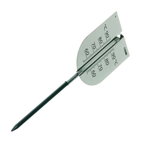 Termometern placeras i den tjockaste delen av köttet innan det sätts in i ugnen. Under stekningen visar den kontinuerligt aktuell temperatur, vilket ger bättre kontroll över tillagningen. Skalan mäter råvarans temperatur från 55°C till 95°C och är anpassad speciellt för stekning av kött.