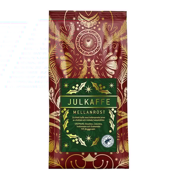 Julkaffe Mellanrost 250g från Bergstrands Kafferosteri är ett friskt och välbalanserat kaffe som bjuder på en harmonisk smakupplevelse. Med subtila toner av choklad och rostade hasselnötter blir varje kopp en njutning, perfekt för att sprida värme och glädje under julens alla stunder.