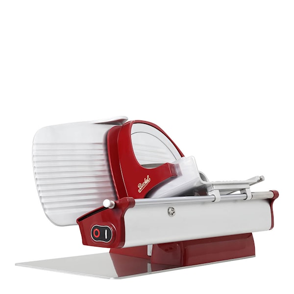 Berkel RL skärmaskin elektrisk 250 mm röd förenar klassiskt Berkel-arv med modern användarvänlighet. Den har ett stort förkromat stålblad som ger rena skivor och mycket tunna rester för minimerat svinn.