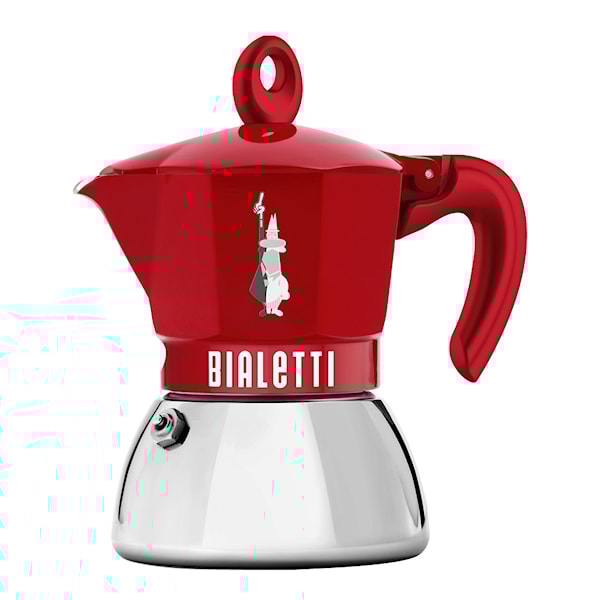 Exclusive mokabryggare för induktionshäll från Bialetti i rött kombinerar traditionell italiensk design med funktionell kvalitet. Med en kapacitet på 15 cl brygger den fyra koppar espresso – perfekt för gemensamma kaffestunder. Designen bygger på originalet från 1933, med den ikoniska mannen med mustasch och den klassiska åttakantiga formen.