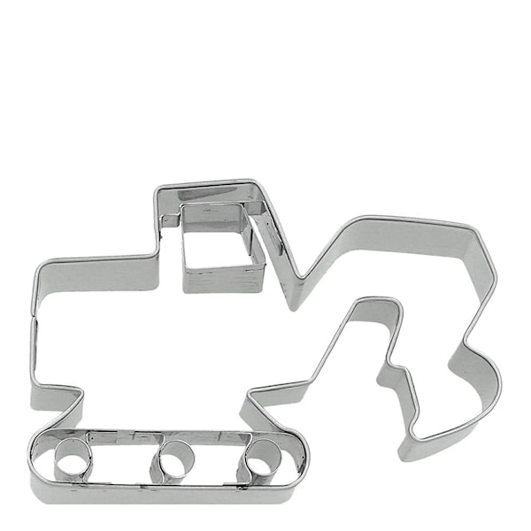 Gör bakningen till ett äventyr med Cookie Cutters grävmaskin pepparkaksform 8,5 cm från Birkmann. Den robusta formen i rostfritt stål har en blankpolerad kant som skär ut tydliga och eleganta grävmaskinsmotiv i pepparkaksdeg, mördeg eller sockerpasta.