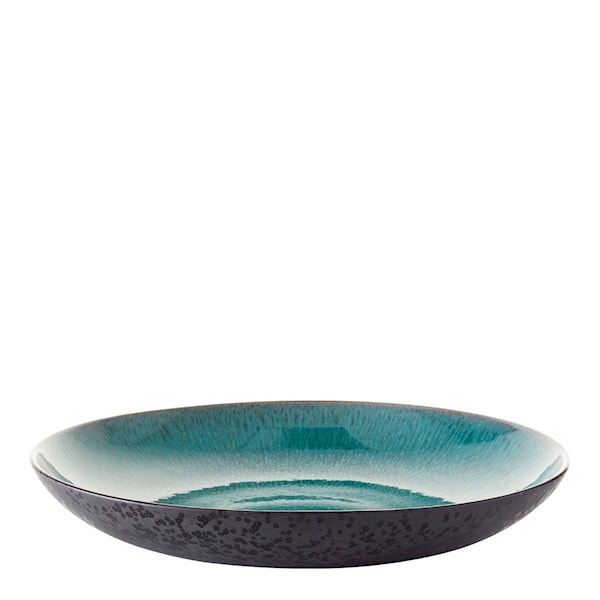 Det här stora, härliga fatet från danska Bitz är tillverkat i svart stengods med matt reaktiv glasyr på utsidan kombinerat med en fin brons-metallisk glasyr på insidan. Den reaktiva glasyren gör att ingen produkt är den andra helt lik vilket ger hela serien en unik känsla. Tål diskmaskin men var medveten om att citrusjuice kan lämna fläckar på produktens yta.