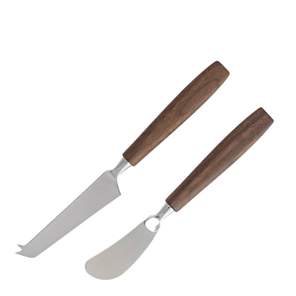 Tvådelat set med ostkniv och smörkniv täcker ost och pålägg