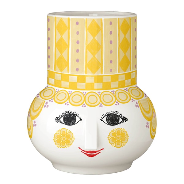 Ljusstaken Olga 9 cm gul från Bjørn Wiinblad kombinerar charm, färg och funktion. Den ikoniska figuren med sitt glada ansikte och prickiga detaljer blir ett poetiskt inslag i hemmet. Tillverkad i blankglaserad keramik med dekaler i klargult och lavendel – lika fin med ett värmeljus som med ett kronljus.