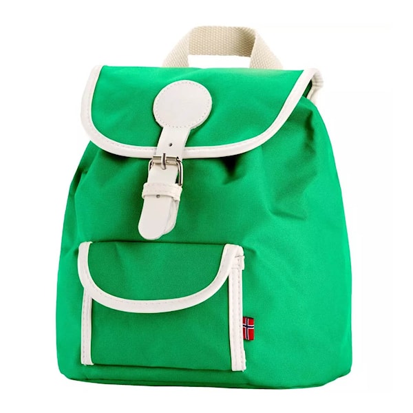 Bröstremmen framtill håller ryggsäcken på plats även under lek. Designen hämtar inspiration från förr, men har moderna ergonomiska funktioner. Spännet är tillverkat i äkta skinn, och de vita kantbanden ger ett stilrent uttryck. Materialet i matt polyester är slitstarkt och lätt att rengöra. Lagom stor för matlåda, flaska och små tillbehör.