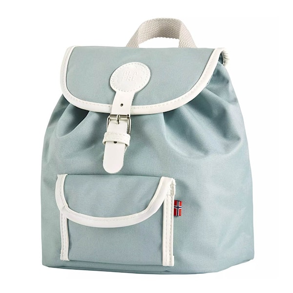 Bröstremmen framtill håller ryggsäcken på plats även under lek. Designen hämtar inspiration från förr, men har moderna ergonomiska funktioner. Spännet är tillverkat i äkta skinn, och de vita kantbanden ger ett stilrent uttryck. Materialet i matt polyester är slitstarkt och lätt att rengöra. Lagom stor för matlåda, flaska och små tillbehör.