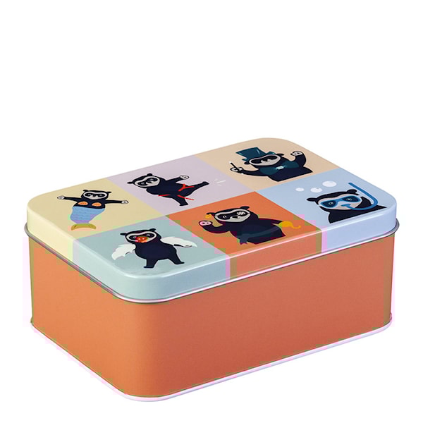 Blafres matlåda/förvaringslåda 14x10 cm är en söt och användbar burk som passar i både köket och barnrummet. Den är tillverkad i metall med en höjd på 6 cm och pryds av Blafres karakteristiska motiv som gör den till ett lekfullt inslag i vardagen.