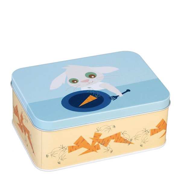 Blafres matlåda/förvaringslåda 14x10 cm är en söt och användbar burk som passar i både köket och barnrummet. Den är tillverkad i metall med en höjd på 6 cm och pryds av Blafres karakteristiska motiv som gör den till ett lekfullt inslag i vardagen.