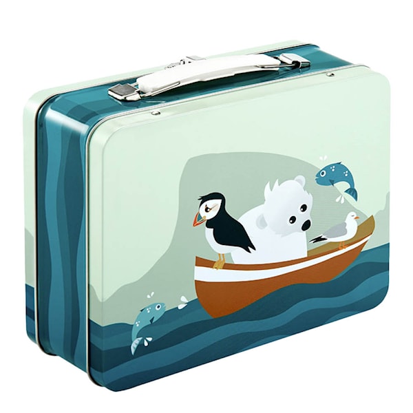 Plåtväska 16x19 cm från Blafre är en mångsidig liten väska som fungerar lika bra som förvaringslåda för småsaker och leksaker, som en rolig accessoar för barnet eller som praktisk matlåda för torra livsmedel. Med sin charmiga design blir den både ett lekfullt inslag i barnrummet och en användbar följeslagare i vardagen.