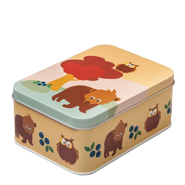 Blafres matlåda/förvaringslåda 14x10 cm är en söt och användbar burk som passar i både köket och barnrummet. Den är tillverkad i metall med en höjd på 6 cm och pryds av Blafres karakteristiska motiv som gör den till ett lekfullt inslag i vardagen.