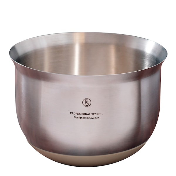 Professional Secrets blandskålar är stapelbara och har höga kanter för att undvika spill vid exempelvis vispning. Det tunna men hållbara rostfria stålet gör skålarna lätta men fortfarande slitstarka. Skålarnas kant är perfekt doserad så man lätt kan hälla ut skålens innehåll oavsett om det är lätt eller trögflytande. Botten är i silikon som minskar buller och ger grepp mot underlaget även när skålen lutas.